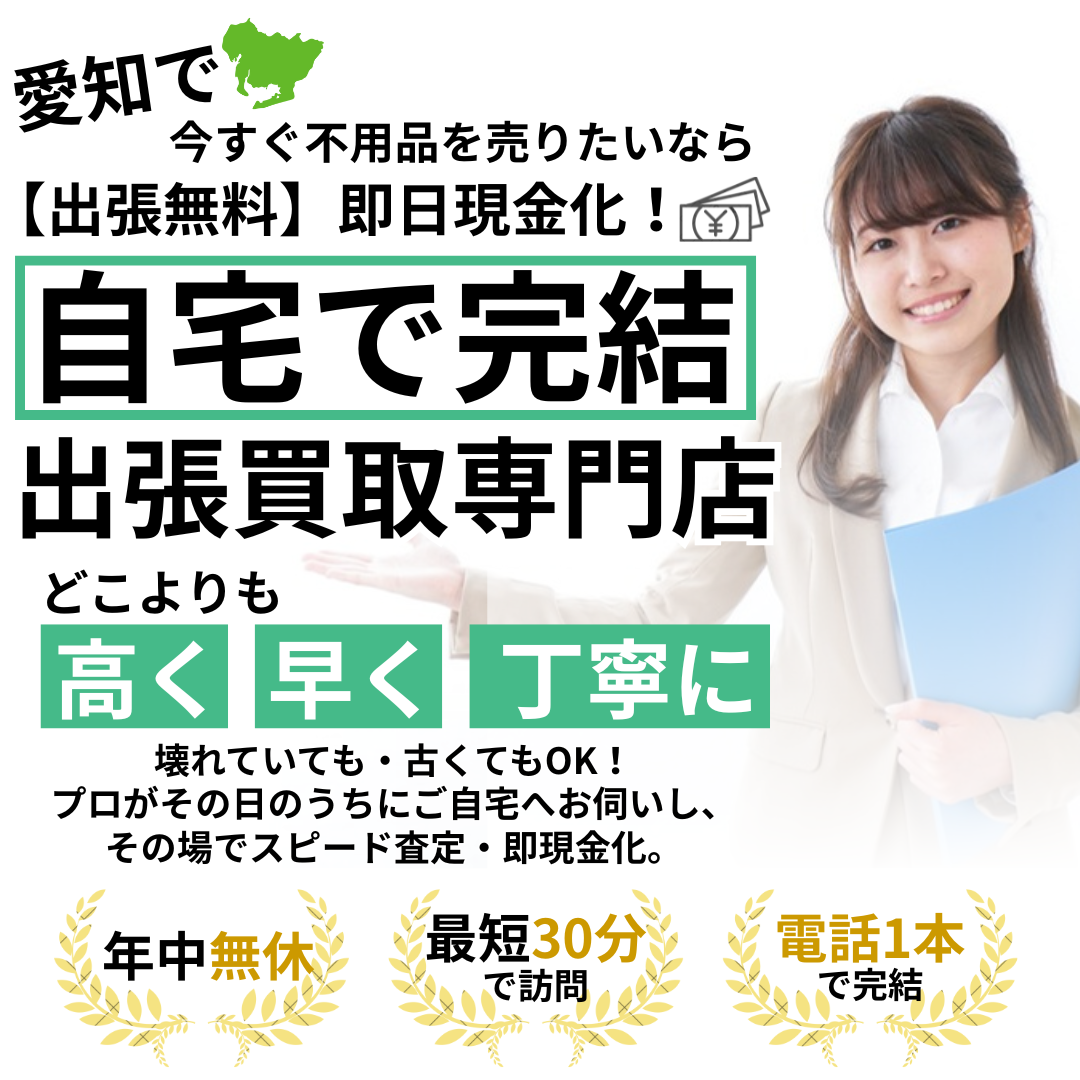 電話一本で最短30分で査定員が愛知県全域へ即日出張し、その場で現金をお渡し。
